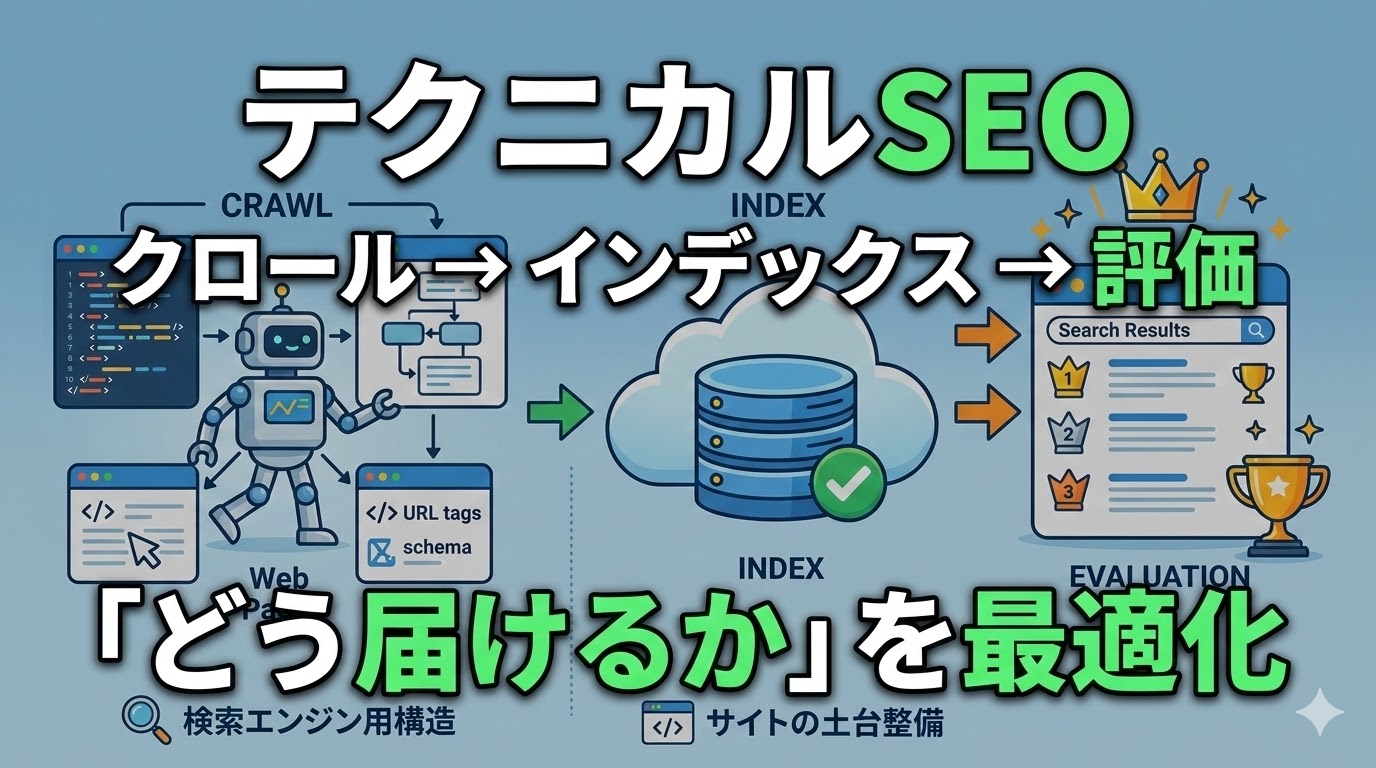 コンテンツSEOが「何を伝えるか」に注力するのに対し、テクニカルSEOは「どう届けるか」という伝達経路の最適化を担います。